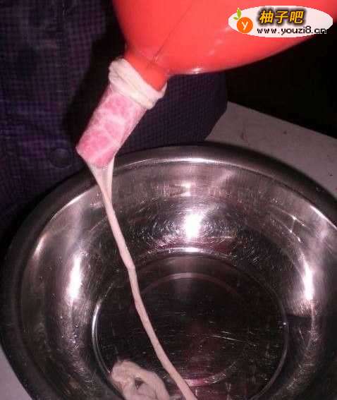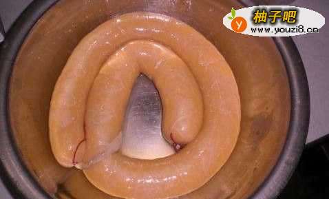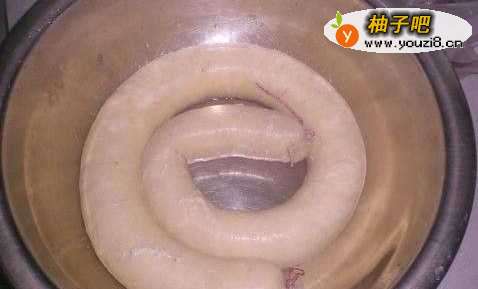 将买来的肠衣用清水洗净后,灌水试一下,看看有没有露气的地方。