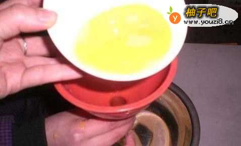 3将泡大料和花椒的水晾凉后捞出大料和花椒,将水倒入打散的鸡蛋中。加入适量的盐和胡椒粉,搅拌均匀