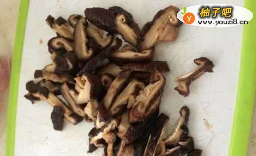 3泡发的香菇冲洗干净,切小块备用;