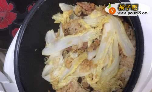 7电饭锅冒了一阵子蒸汽就可以开盖子查开水分是否蒸干,刚刚好看不到水的时候就可以把洗好的娃娃菜放进去了,浇上一点酱油,盖上盖子继续煮到自动调停;