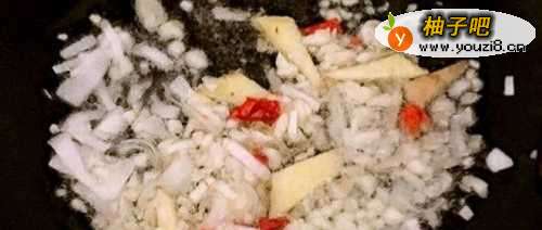 4接下来,把葱姜蒜切碎,切条,在油锅中加入食用油,然后等油热之后爆香。
