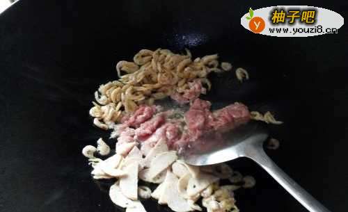 2热锅下油,开小火,把干虾仁煸出香味;