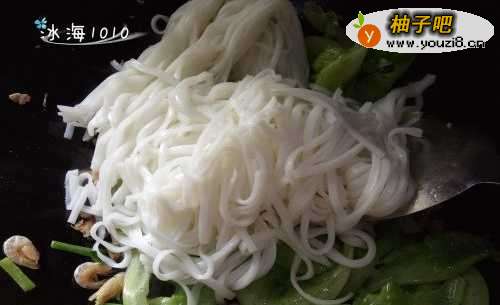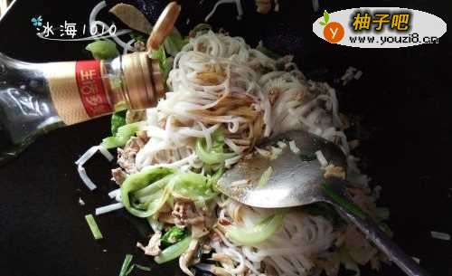 5青菜稍微炒下就可以下粿条翻炒了;