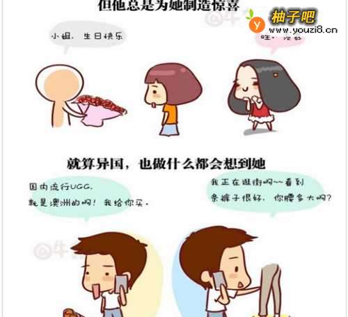 4送对方礼物。平时对方感冒发烧,独自寂寞的时候,你没有办法陪在身边,这种感觉令对方很不好受,尤其是看见身边一对对情侣,每天黏在一起,更加渴望有个人陪在身边,如何消除这种空虚感与寂寞感?那就是时不时送对方小礼物,不求最贵的,但求实用的,实质的东西握手里更加温馨,也能让他周围的人知道,远方有个人深爱着他,这种爱不比面对面的爱情差。
