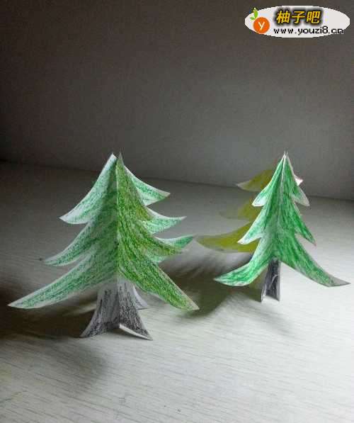 6然后给圣诞树涂上孩子喜欢的颜色。立体圣诞树就做好了。