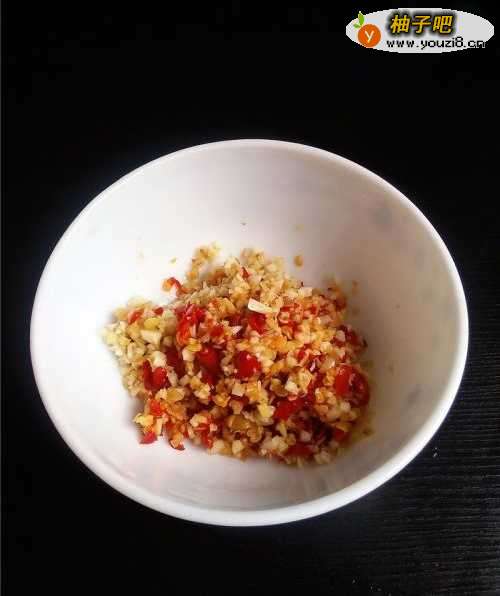 5大蒜、小米辣、老姜切碎。
