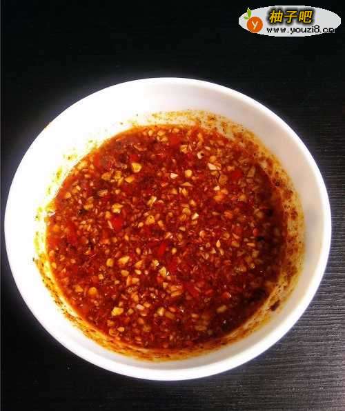8第5步的姜蒜小米辣调料里,调入适量红油辣子,盐、鸡精、花椒粉、有机亚麻籽油、酱油、醋,搅拌均匀。
