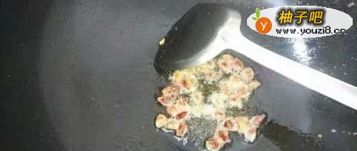 6依次调入食盐,酱油和油葱,且翻炒均匀。