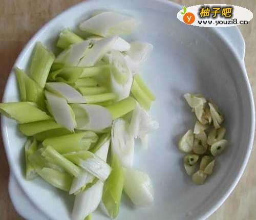2大葱切段,蒜头切碎。