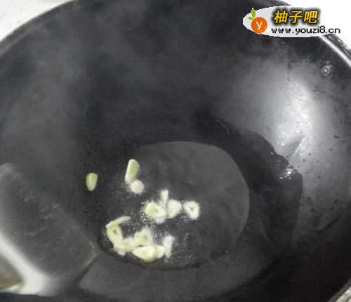 3锅中加油烧热,放入蒜头煸炒。