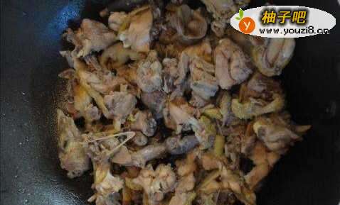 4锅中放入油,加入焯好的鸡煎炸到金黄色。