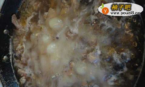 2锅中烧开水,加入腌好的鸡焯开后加入少许料酒烧开捞出备用。
