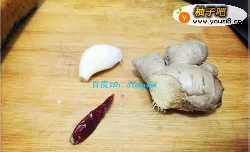 4准备若干辅料:生姜、蒜头、辣椒干,分别处理一下。打开电磁炉,往锅内加入适量的油,放入辅料爆香一会。