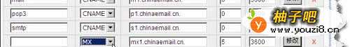 3按上面步骤将“mail”、“smtp”、“pop3”三条别名(CNAME)记录逐个创建,如下图所示: