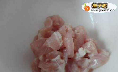 4肉也切成细丝,用生粉腌制