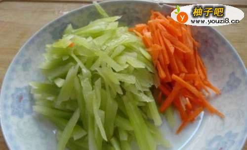 2青笋、胡萝卜切成均匀的细丝
