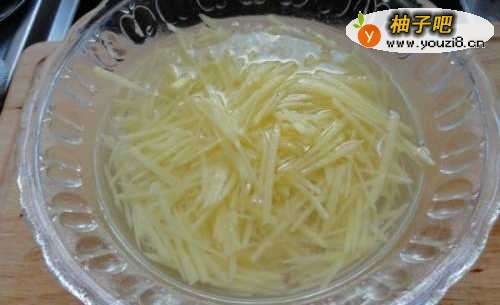 3土豆也切成细丝 用水透两遍 去掉淀粉
