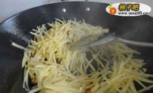 6先加入土豆丝翻炒