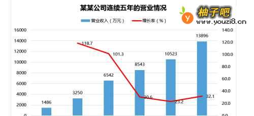 公司在做年度、月度分析报告时,往往会用到一些组合图,来呈现公司的营业数据,以及业务增长变化情况。下面我将详细介绍柱状图与折线图的组合图形。