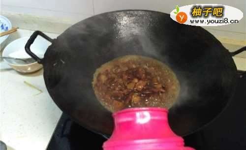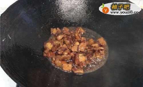 3将烧好的红烧肉倒入锅中。