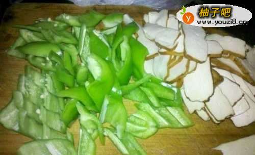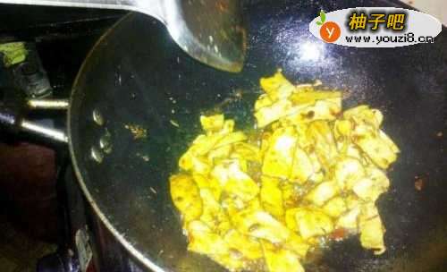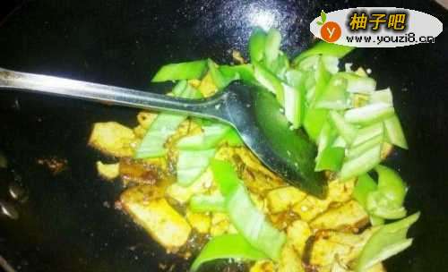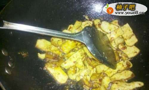 4放入香干翻炒,均匀蘸上豆瓣酱