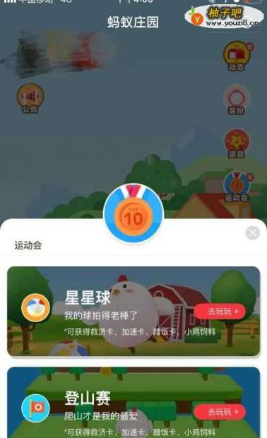 5在右边小房子上面有个运动会,可以点击进去陪小鸡玩玩