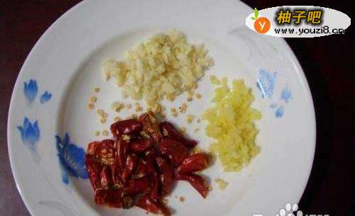 3姜、蒜切末,红辣椒切段