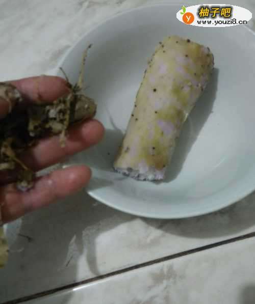 3把山药从锅中取出,晾到温热后,揭去外面的皮和须子,一定要揭干净。