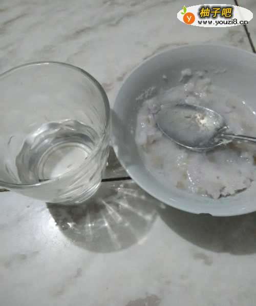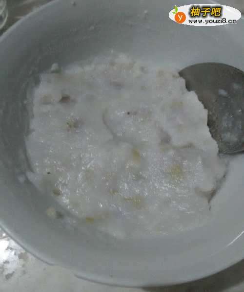 7用勺不停地搅拌山药和水,把它们搅成泥状。