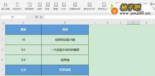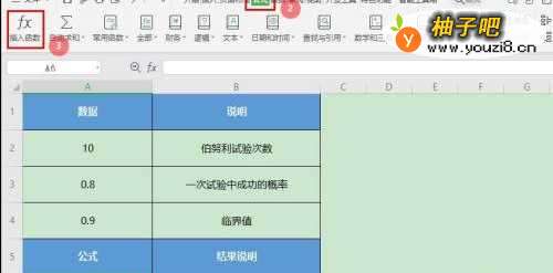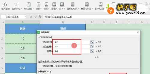 成功的概率:A3,选择试验中成功概率值的单元格;