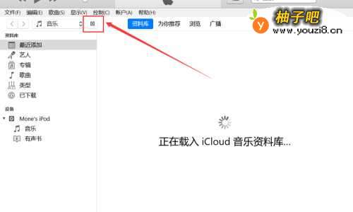 2进入iTunes主界面中后,点击如图所示位置图标,进入管理设备。