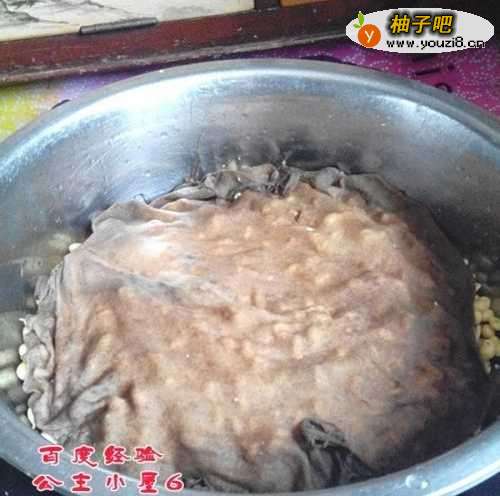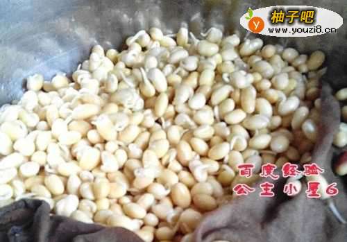 3将浸泡好的豆子沥干水分,再将无法没有涨大的豆子挑出去。然后将豆子放置在准备好的盆中,上面盖上屉布,或可吸水的布,布要干净,不可带油。