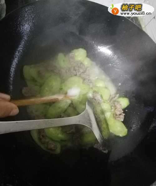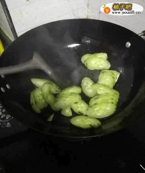 5放入切好的青瓜在锅中爆炒。
