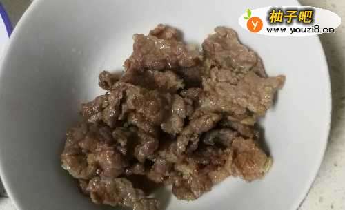 4牛肉炒熟后,起锅放入碗中。