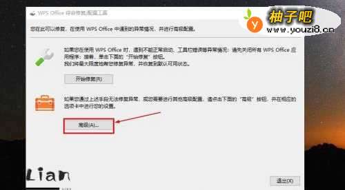 2在“WPS OFFICE配置工具”对话框,点击【高级】;