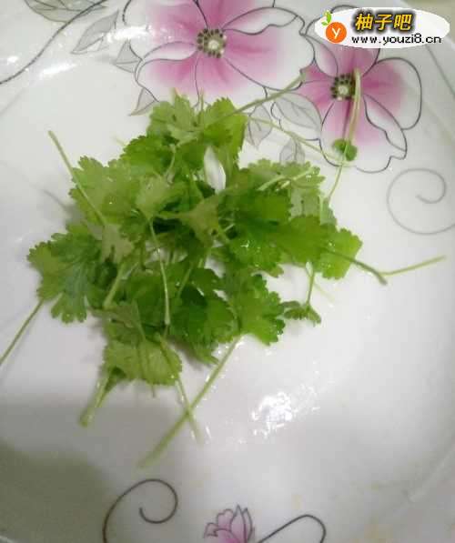 13准备适量香菜,浸泡5分钟,锅里加适量盐,食材都煮熟了就可以捞出,最后撒上香菜