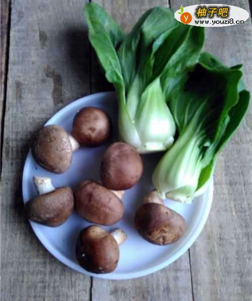 备好原材料:香菇,上海青。