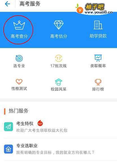 4在“高考服务”中找到“高考查分”并打开