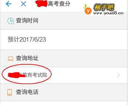 5系统会自动地理定位,定位到自己所在的省份和城市,打开“高考查分”后,我们选择,如:“某某省教育考试院”,也可以拨打上面的电话查询