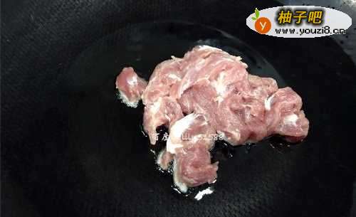 4热锅凉油,把瘦肉放进锅里用大火翻炒2分钟。