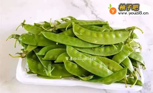 准备一盒荷兰豆,将两面的长丝去除掉,洗干净备用。