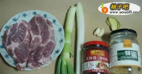 3蜂蜜加少许清水调匀备用,烤盘内铺好锡纸后把肉块放入烤盘中
