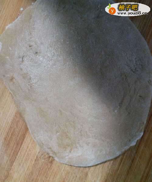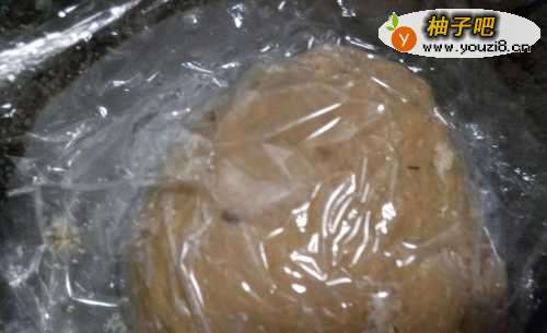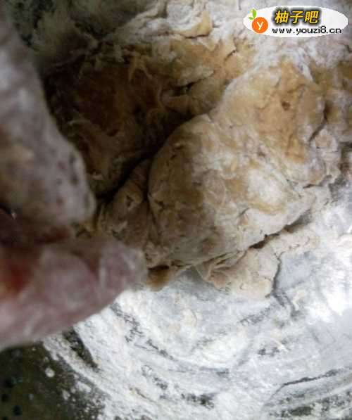 2再在红糖水中加入面粉200g,再把它们揉成团。