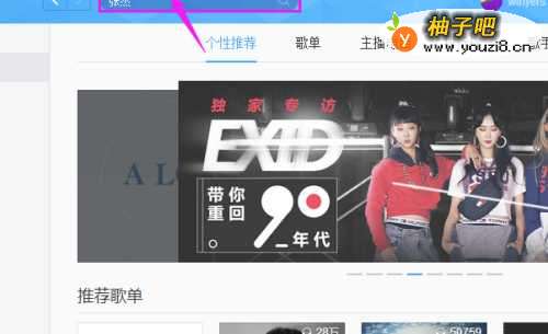 4点击搜索框,输入自己喜欢的歌曲或歌手进行搜索。