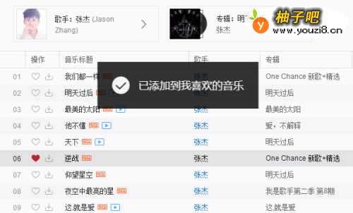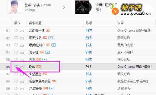 5选择自己喜欢的那首歌,点击那首歌前面的爱心符号。