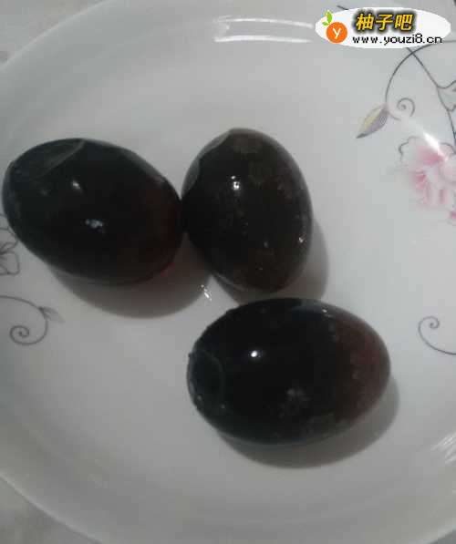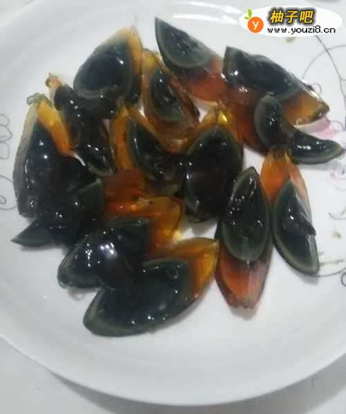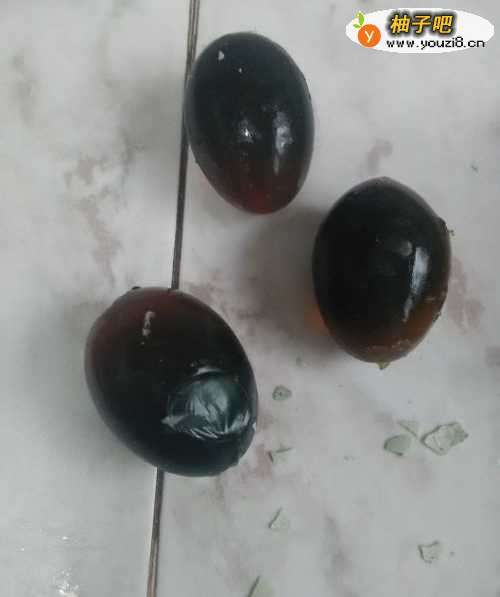 3将三个皮蛋的壳剥掉,剥的时候,要慢慢的,不要把蛋清弄坏。