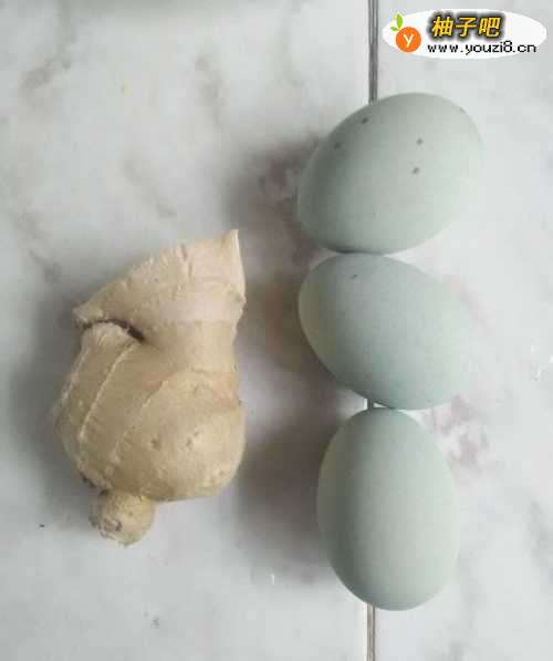 做凉拌皮蛋,要准备三个皮蛋和一块新鲜的姜。
