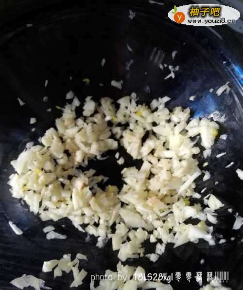 大蒜去掉蒜衣,洗净,剁碎,切记不要剁得太碎,后面要挑出来的;