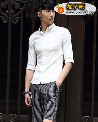3潮流男装搭配三,版型十分出色的立领白色衬衫,能够将穿着者的好身材完全展现出来,凸显出浓浓的男人味。另外,搭配黑白色条纹装饰元素,能够增强整体的休闲风魅力,同时让你的男装搭配更适合夏季时尚氛围。