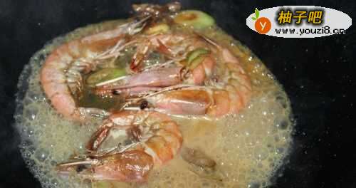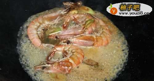 3放入虾翻炒。